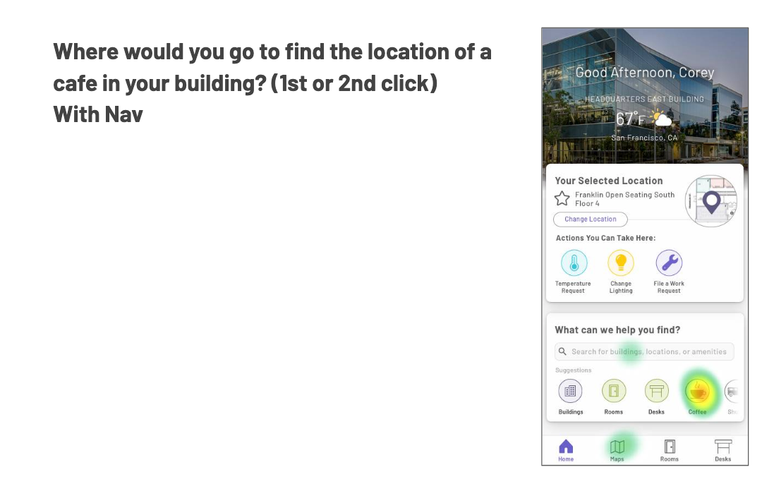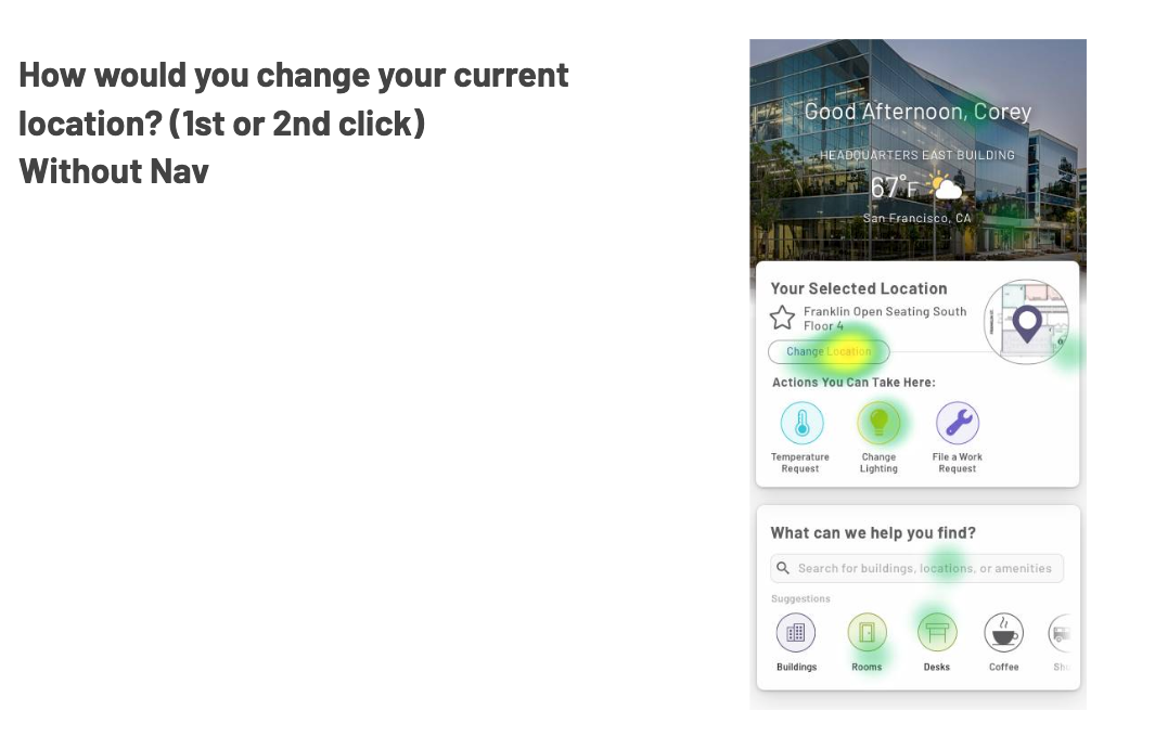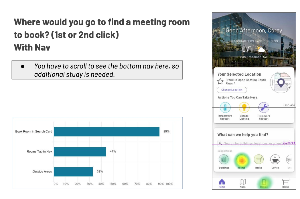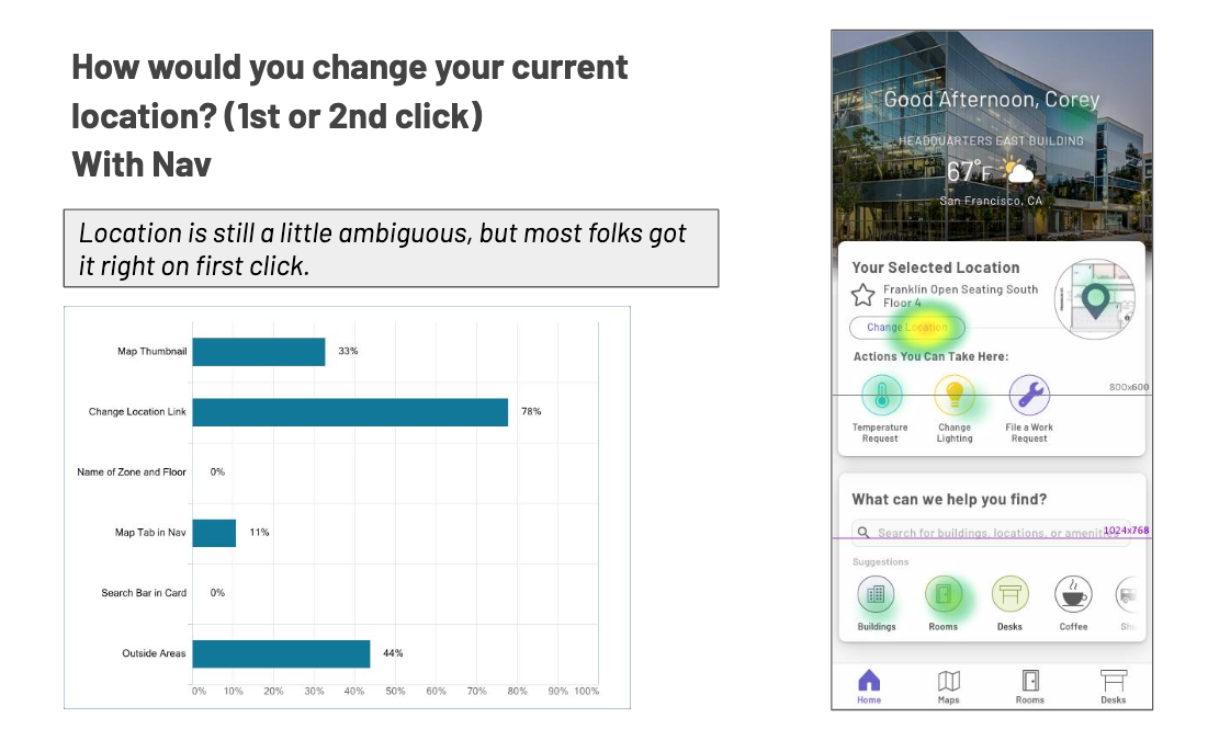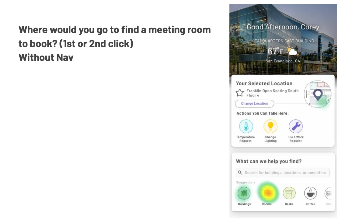 • Users reported landing on the floor map was daunting and the call to action was not obvious.