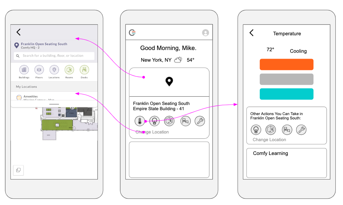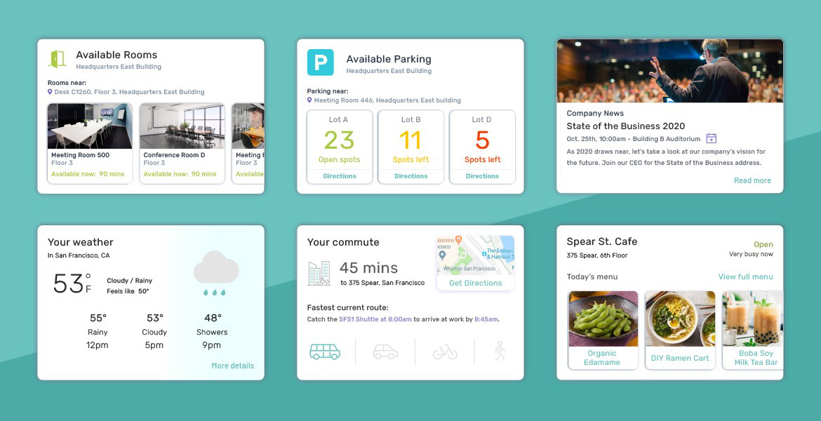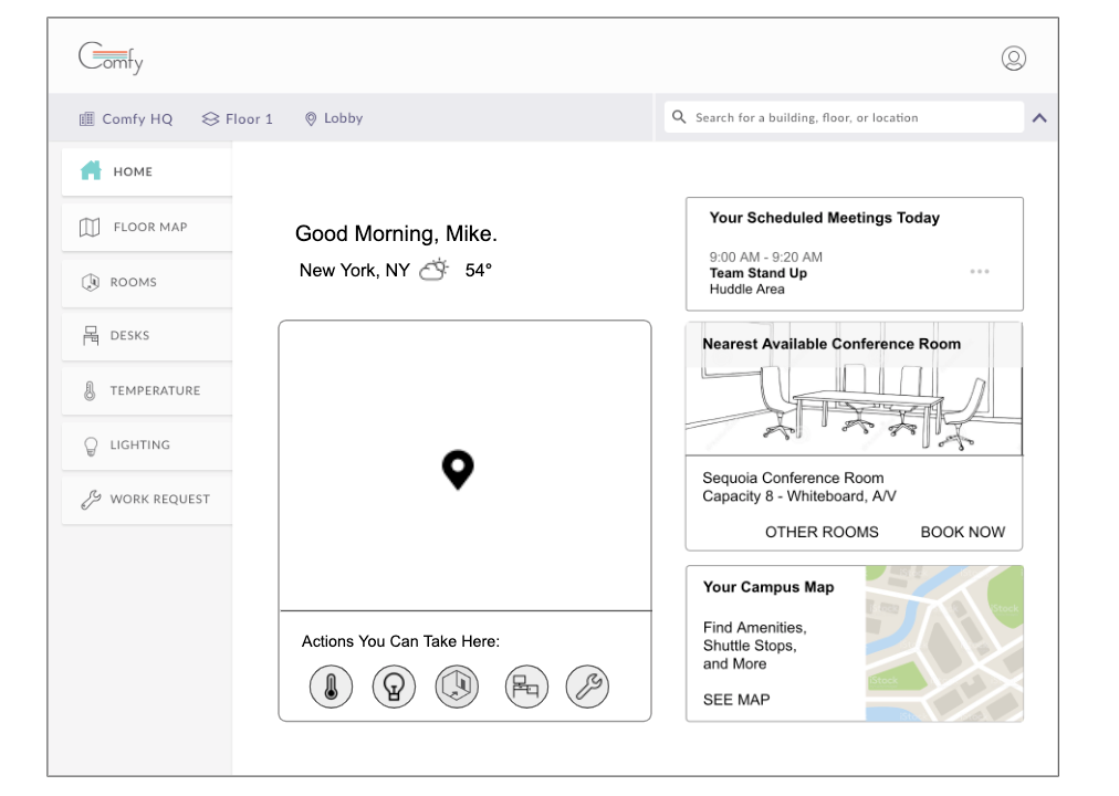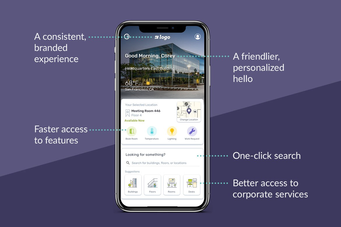 The new enhanced welcome experience sets the stage for a full roadmap of enhancements, including endless card customization, enhanced amenity information, and step-by-step navigation. It also provides users with the tools they need to be their most productive and engaged selves at work and customers with the ability to satisfy the individual needs of their building environments.