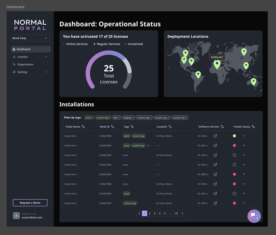 As the product and customer-base grew, a need for a management tool emerged. Users needed a way to manage existing software licenses, purchase new licenses, and deploy and manage sites across their real estate portfolio.