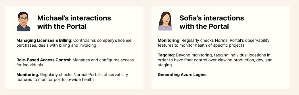 In previous projects, we created user persona’s. These two, Michael & Sofia, were important for the Portal project. Here are their personas: